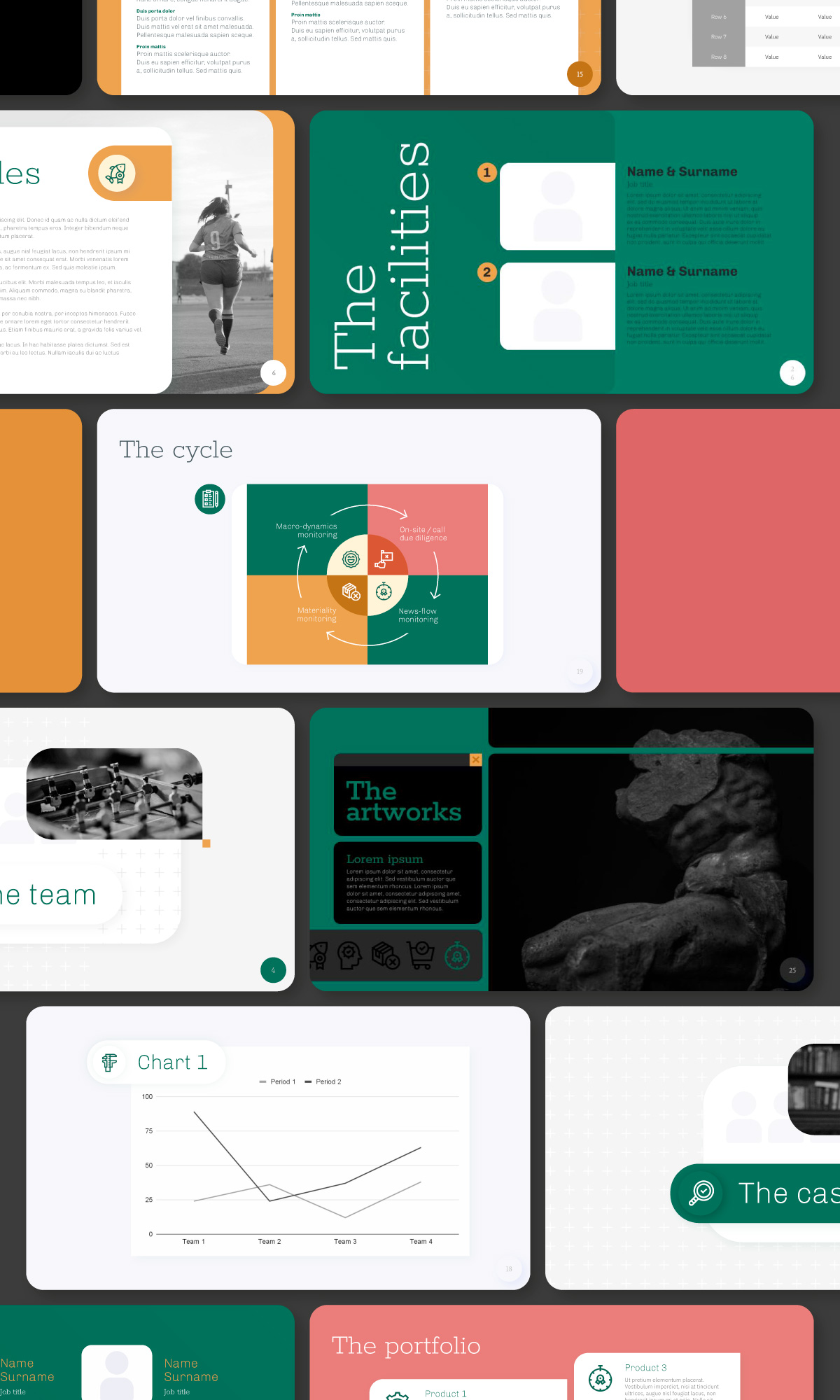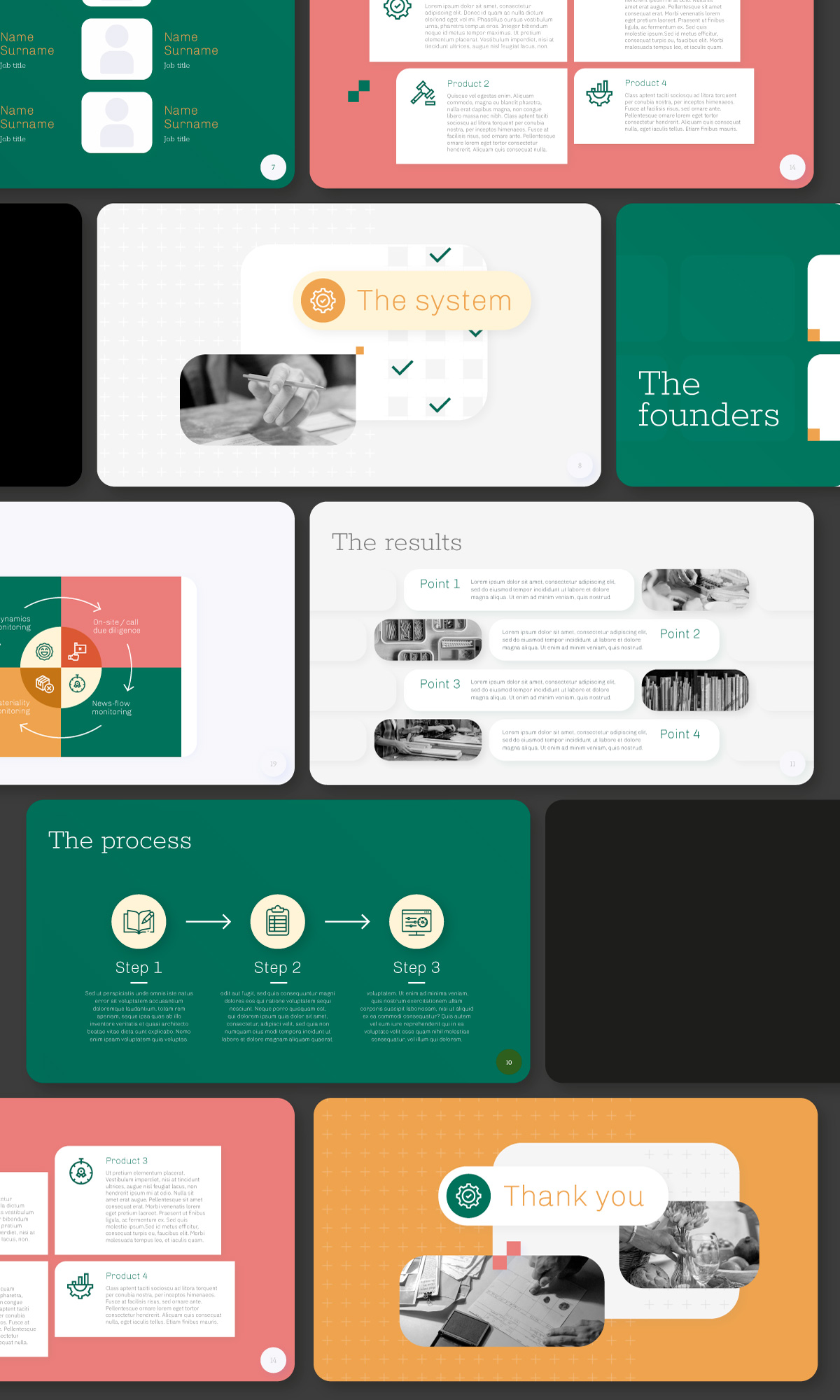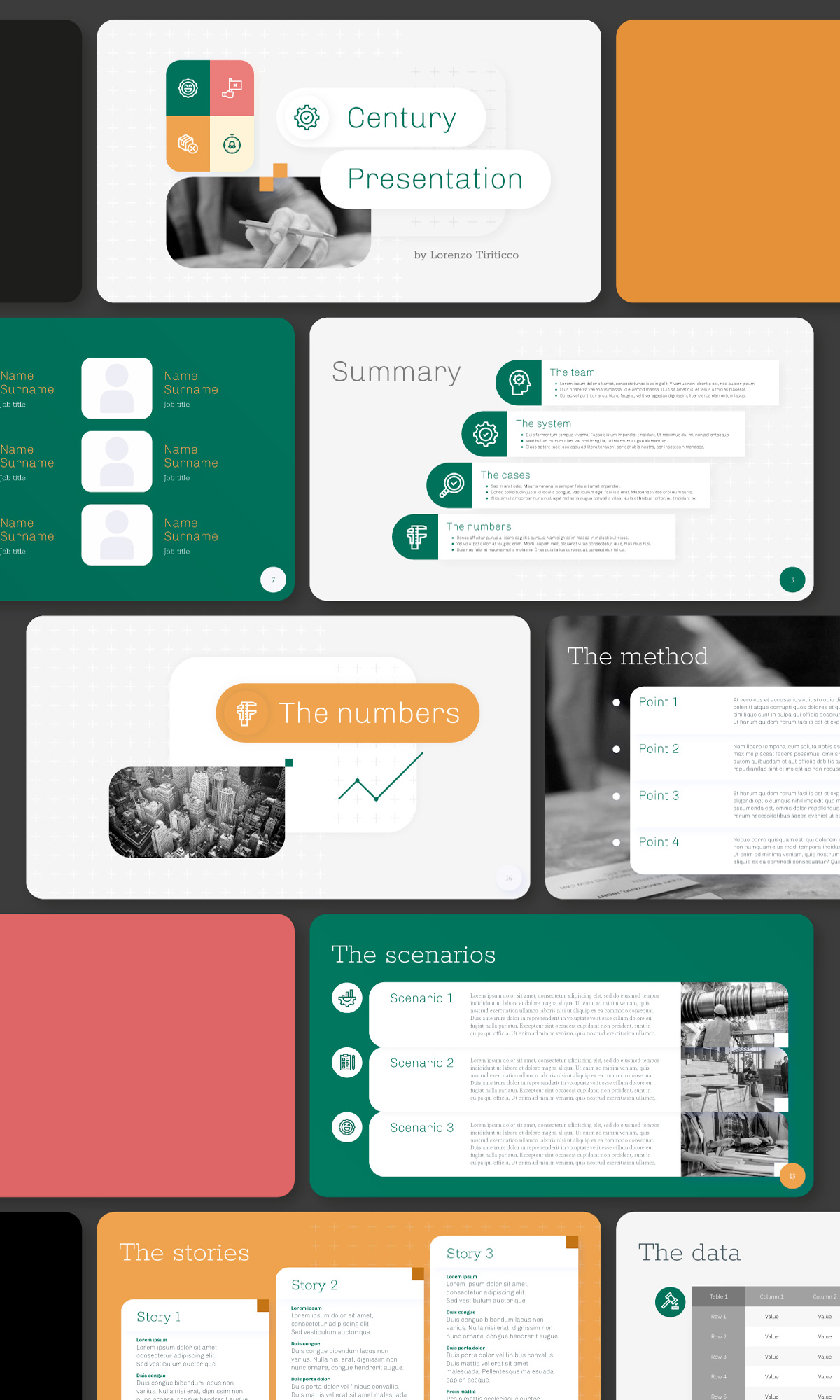 Century is a presentation deck developed for a hedge-fund manager client of mine. The content revolves around business, management and corporate structuring. It’s structured in sections, with templates for title cards, spreadsheets and much more. The slides were designed in Google slides, which allow for client and designer to collaborate in an easy way.