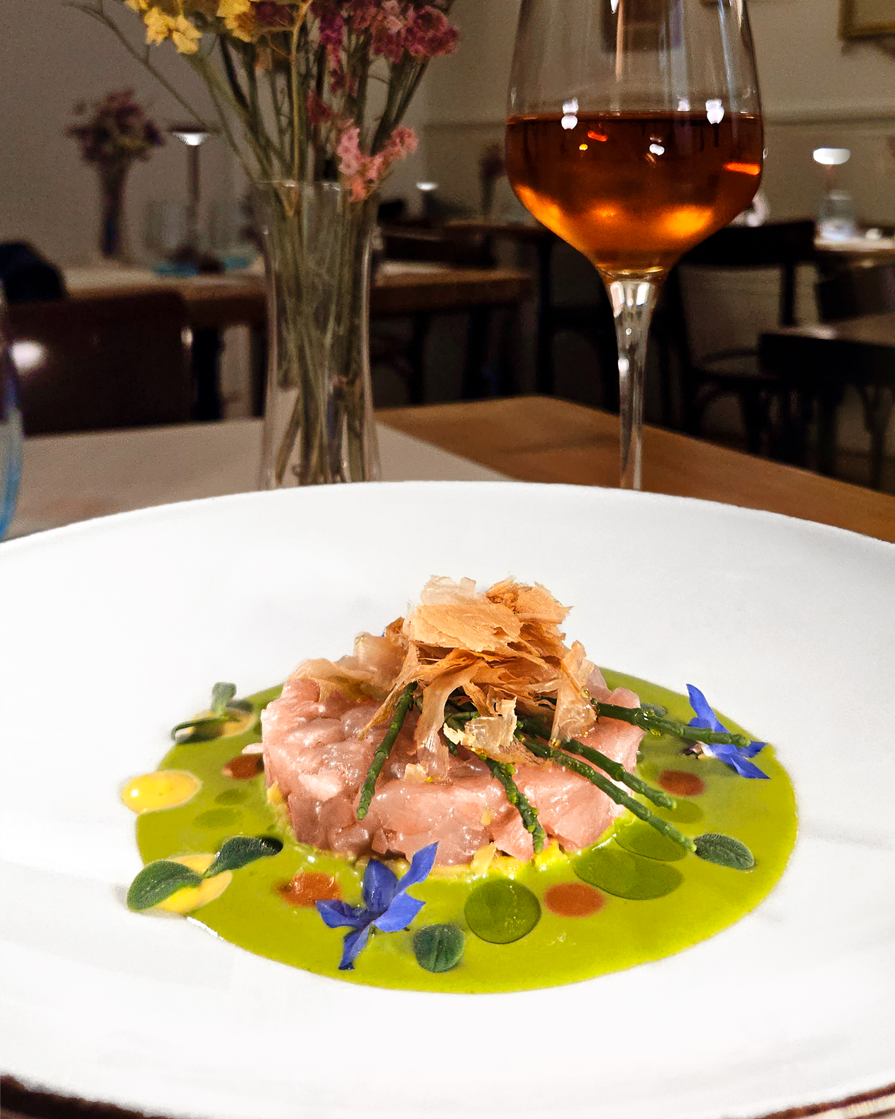 Madreperla Bistrot is an elegant seafood restaurant in Trieste, owned and run by Dunya and Ned. The bistrot blends their passion for décor, atmosphere, and cuisine, creating an environment inspired by antique and Art Deco influences, traditional Japanese illustrations, and consistent references to shells and pearls, which sit at the core of the restaurant’s identity.